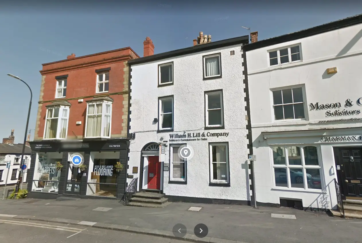 16 Old Market Place, which appears on the Altrincham Tithe Map of 1835 and is situated within the Old Market Place Conservation Area, was last occupied by William H Lill & Co, who converted it into offices.