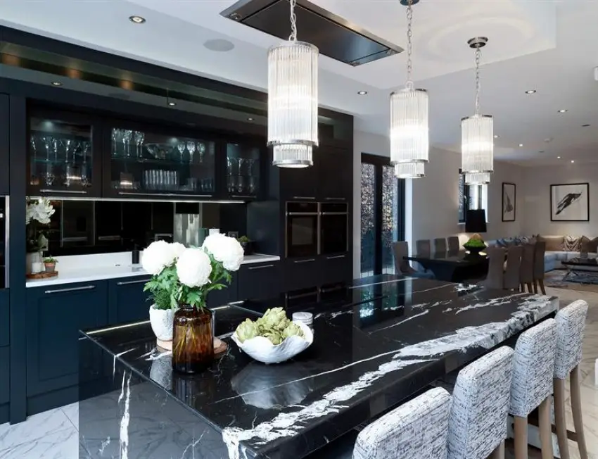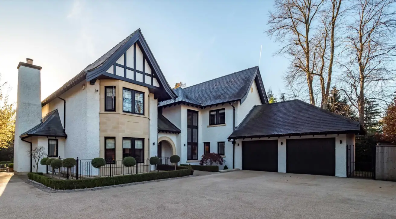 Described as “individually designed and immaculately presented”, the detached house has four reception rooms, five double bedrooms and five bath/shower rooms.