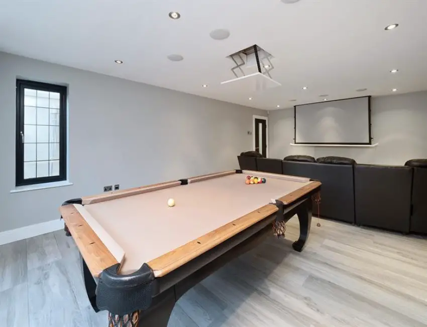 It also features a cinema room, play room, gym, secure gated entrance, attached double garage and south-facing, landscaped gardens extending to over half an acre.