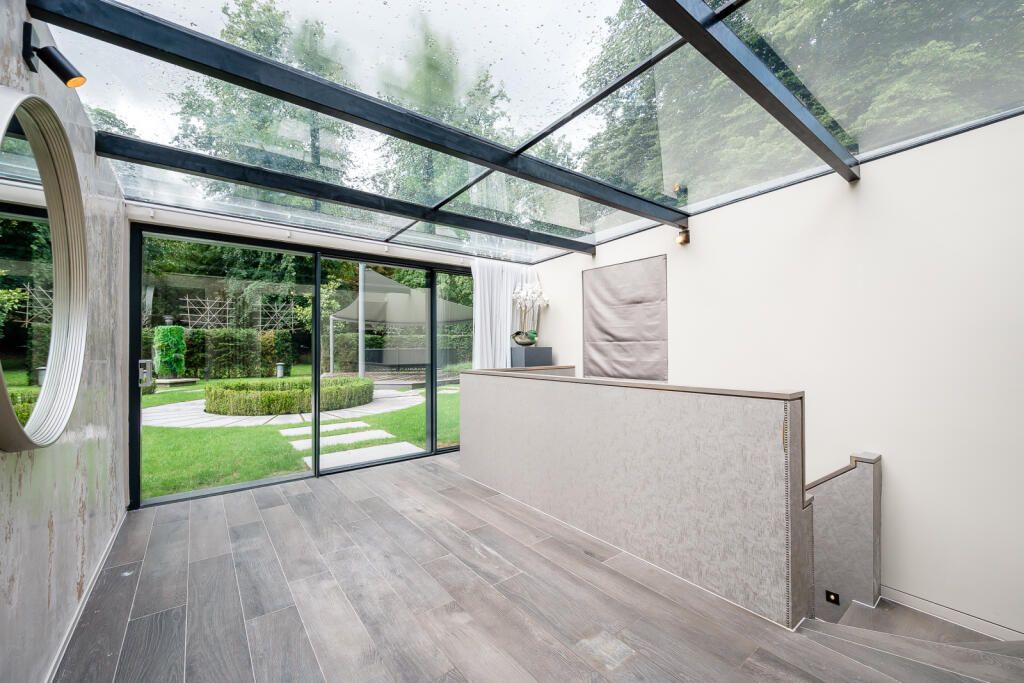 Only a glass folly entrance is visible from ground level, and visitors then descend down a spiral staircase to an open-plan kitchen, dining and living space which is said to be "flooded with natural light via a central lightwell".