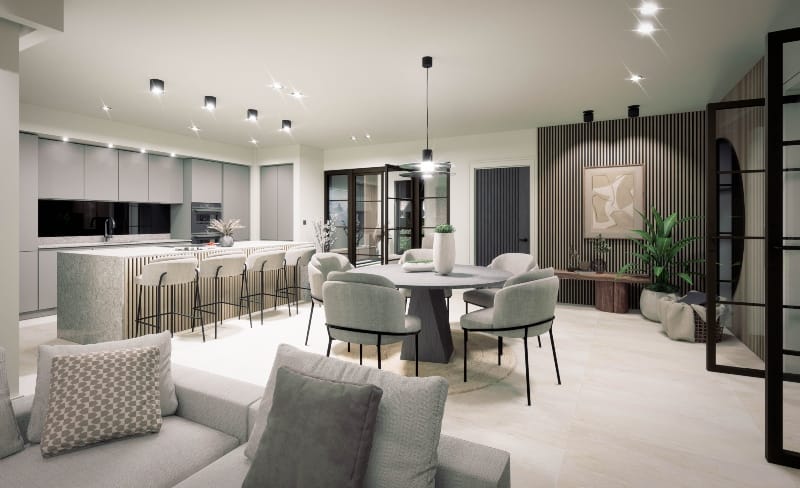 Each home features an air source heat pump with underfloor heating, SieMatic kitchen appliances and Tissino bathrooms with the option for buyers to select their own colour choices.