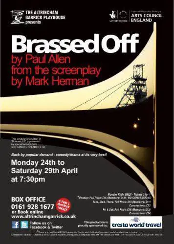 One of Britain’s best brass bands will appear live during a six-night run for popular play Brassed Off at the Altrincham Garrick Theatre next week.