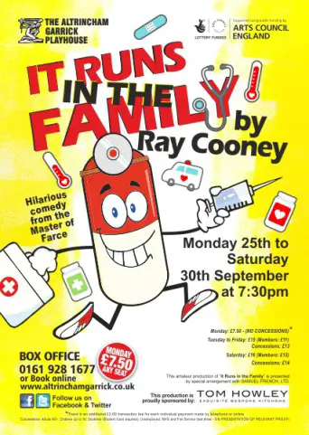 Hilarious comedy It Runs in the Family, from the master of farce Ray Cooney, is to open at the Altrincham Garrick next week.
