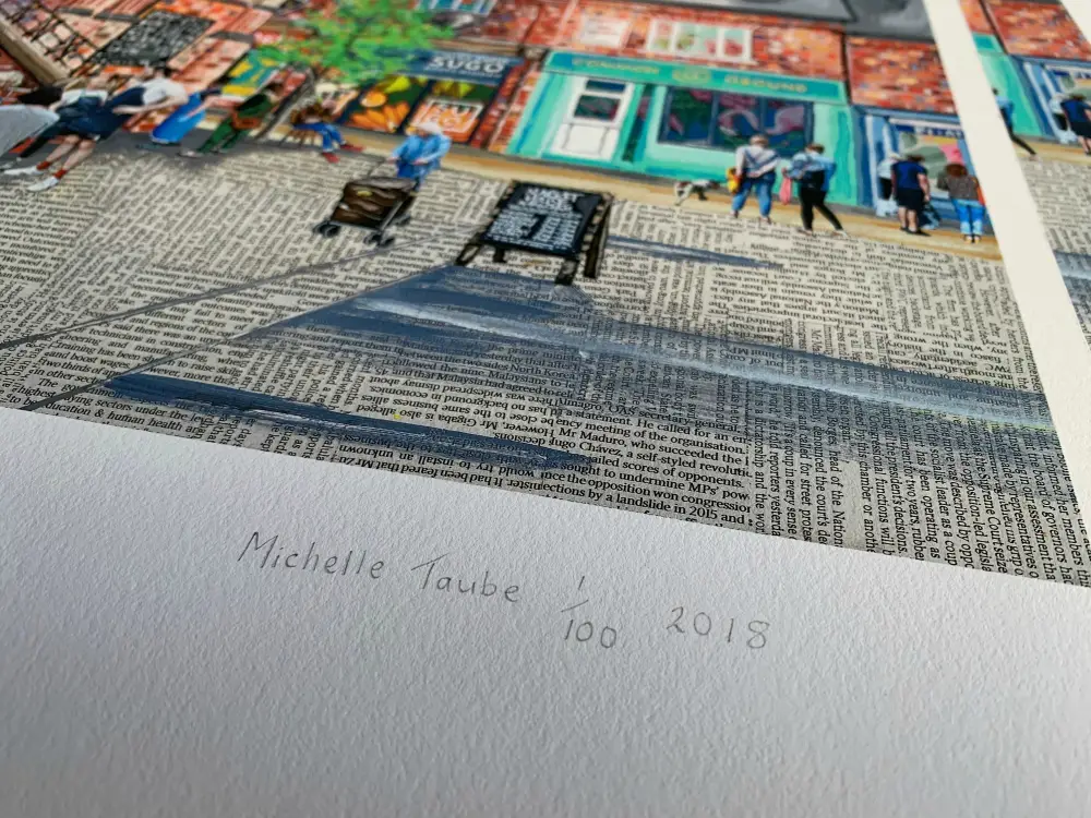 Commissioned by Altrincham Today for the front cover of Issue 5 of our magazine, the Giclee Matt 300gsm unframed print is the work of acclaimed Hale artist Michelle Taube.