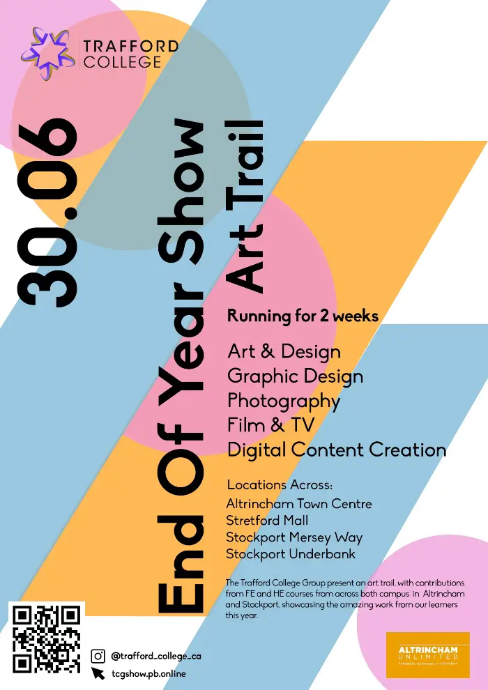Kate Gerbich, Business & Communications Manager at Altrincham BID, added: “We were really pleased to be able to help Trafford College with this project, the college is such an integral part of the town, and we’re delighted that this year’s final year students will get to the display their work to a wider audience.”