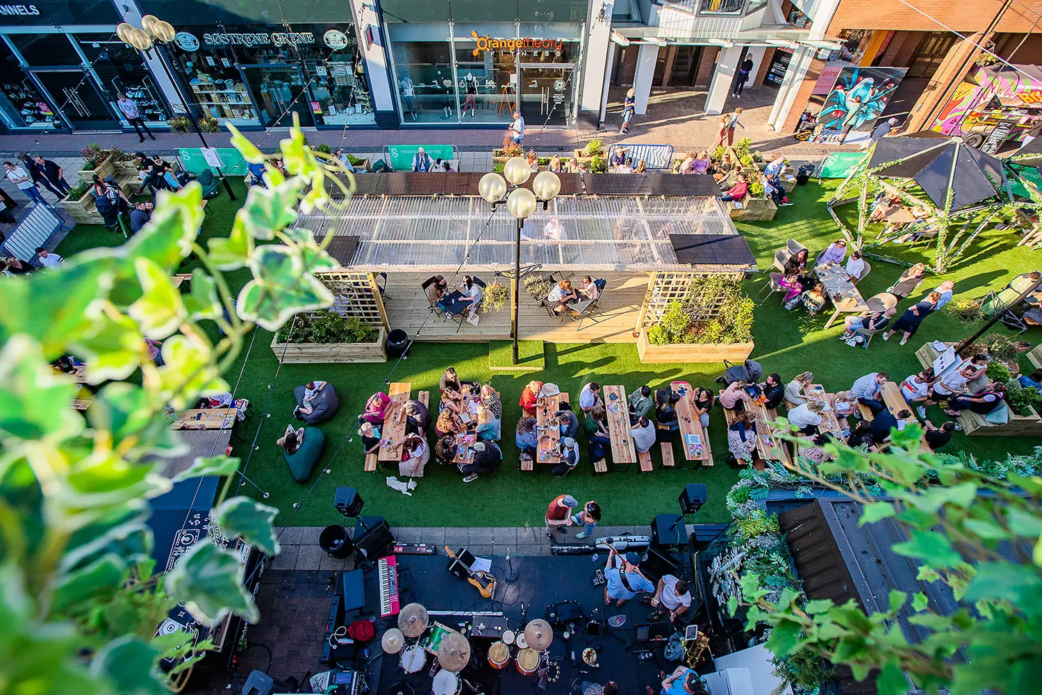 The Friday evening performance will be taking place in Altrincham’s Not so Secret Garden, a sustainable green suburban oasis in the heart of the Stamford Quarter. The area offers cover, suitable for all weathers and alfresco seating created from sustainable materials, centred around a solar-powered pergola with festoon lighting and a lush flower wall.