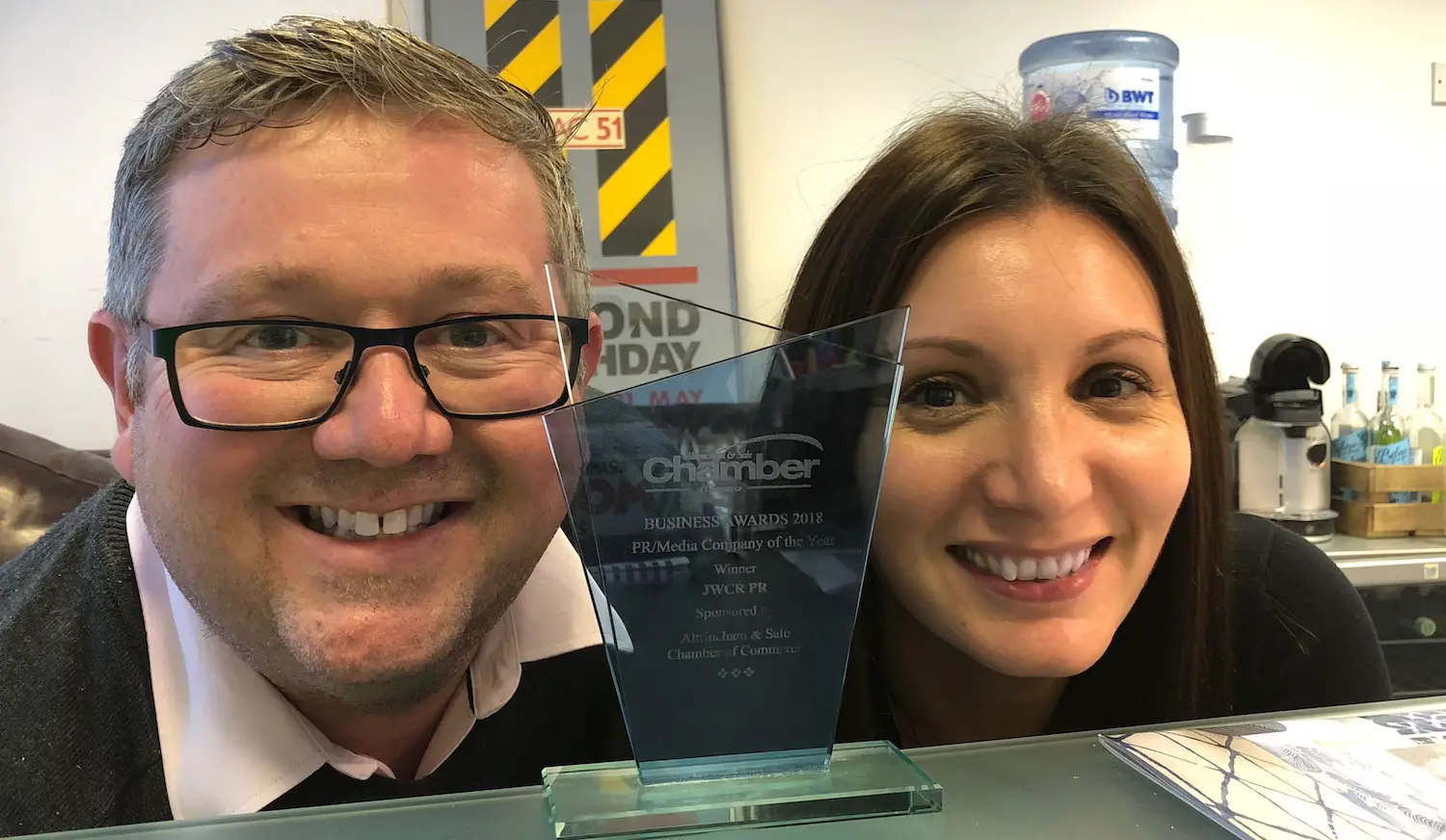 jwc pr, which was launched six years ago by former journalist and broadcaster John Warburton, took home the coveted PR/Media Company of the Year gong at the annual Altrincham & Sale Chamber of Commerce Business Awards.