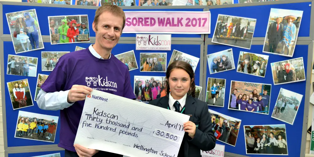Wellington School’s annual charity walk has raised £30,500 for Salford-based children’s cancer research charity Kidscan.