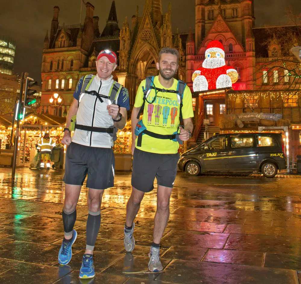 Two Timperley men are to run for more than 16 hours through the night on the longest night of the year to raise money to tackle homelessness.