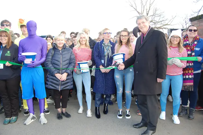Simon Carter, of Fresh Farm Foods, cut the ribbon to send 1,300 students on their way.
