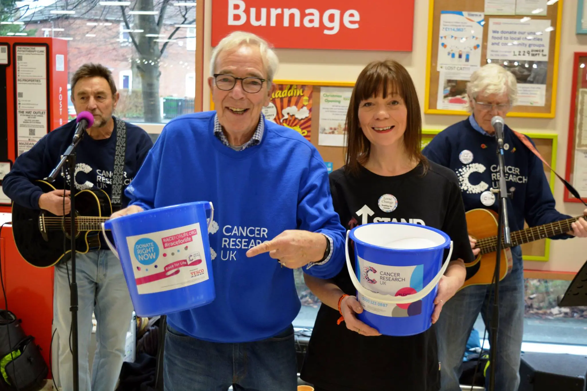 They take it in turns to busk in town centres and at events in South Manchester and Cheshire every weekend, collecting loose change for Cancer Research UK.