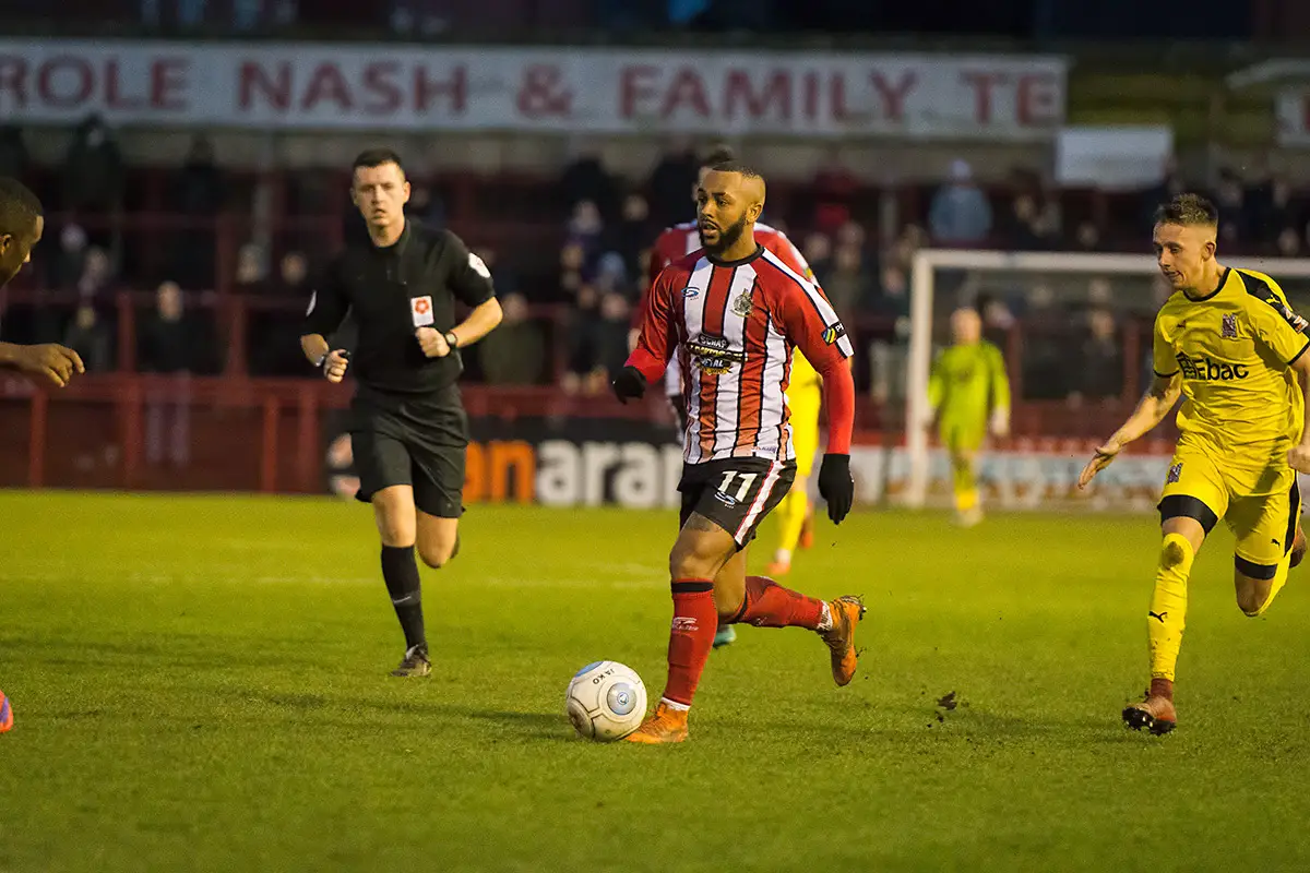 On Tuesday night, Lee Ndlovu scored a very similar goal to John Johnston’s thunderous late winner for us against Alfreton, and they led newly promoted King’s Lynn going into added time. There was massive late drama as the Norfolk side equalised with a penalty, before Brackley were immediately awarded a penalty themselves, but Shane Byrne hit the bar with his spot kick and the ref blew the final whistle seconds later and it finished 1-1.