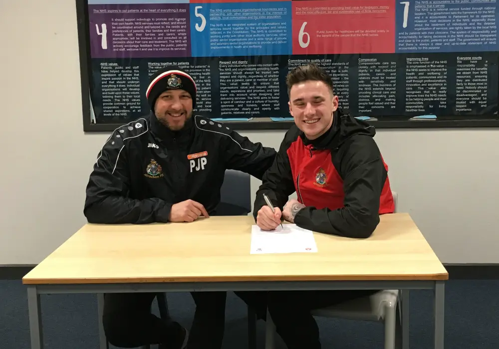 We have signed James Hooper on non-contract terms. James is a forward, who has played in the Football League for both Rochdale and Carlisle United. He signed a one-year contract at Salford City in July 2018 and has been playing for Radcliffe this season, where he sustained a shoulder injury, which has kept him out of action for a few months. He is now fit again and has recently been playing for West Didsbury and Chorlton.