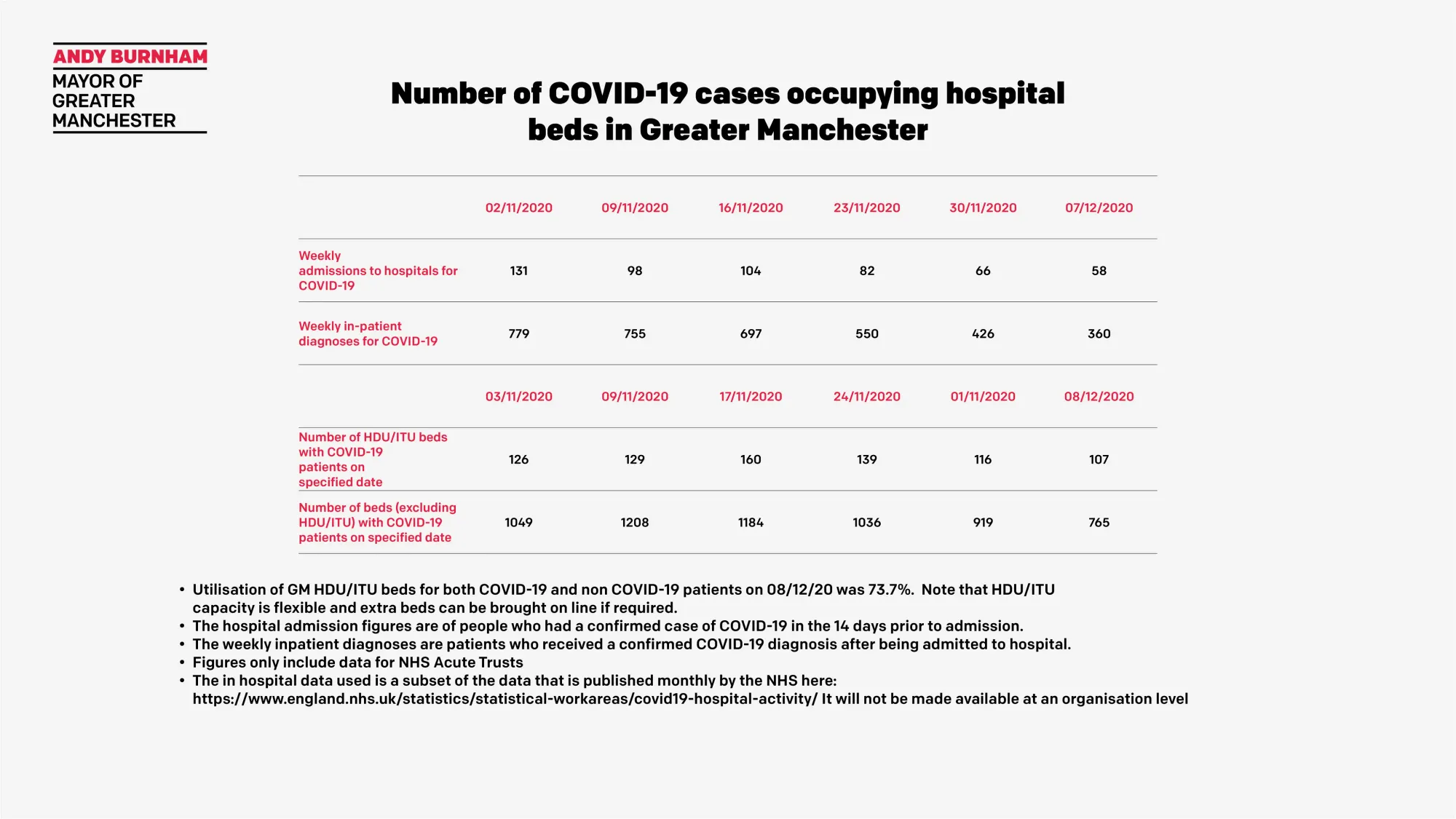 Speaking at a press conference this afternoon, Burnham and Sir Richard Leese, the leader of Manchester City Council, presented the latest evidence confirming that the infection rate was coming down across the region.