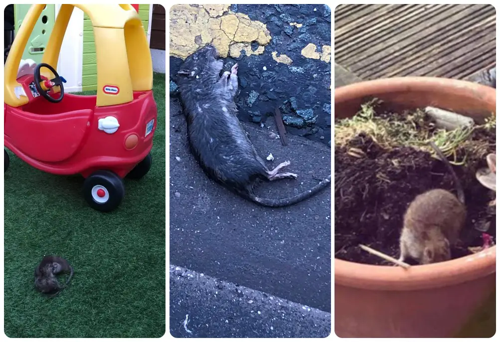 One home owner captured a group of rats scurrying around their patio door one night. There are also photos showing rodents – dead and alive – in flower beds and next to a child’s toy car.