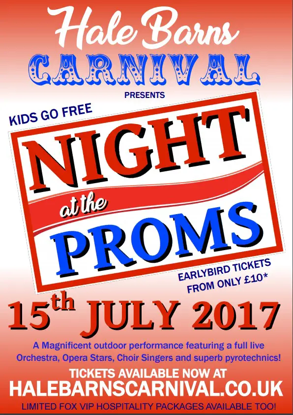 Tickets on on sale now – visit http://www.seetickets.com/event/night-at-the-proms-hale-barns-carnival/st-ambrose-college-playing-fields-hale-barns/1075285