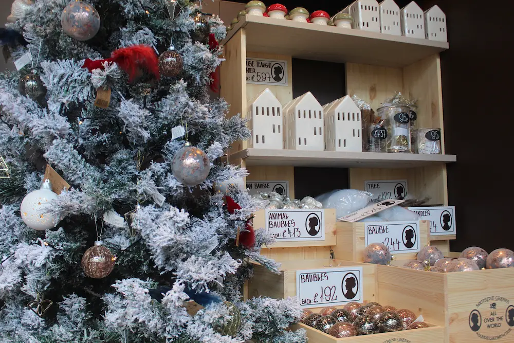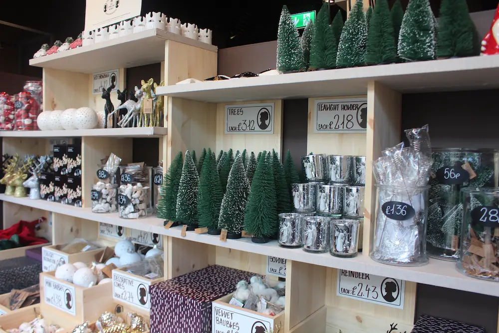 Inside the store entrance at 4b George Street – part of Stamford Square – there is the seasonal section which is currently stocking Christmas decorations.