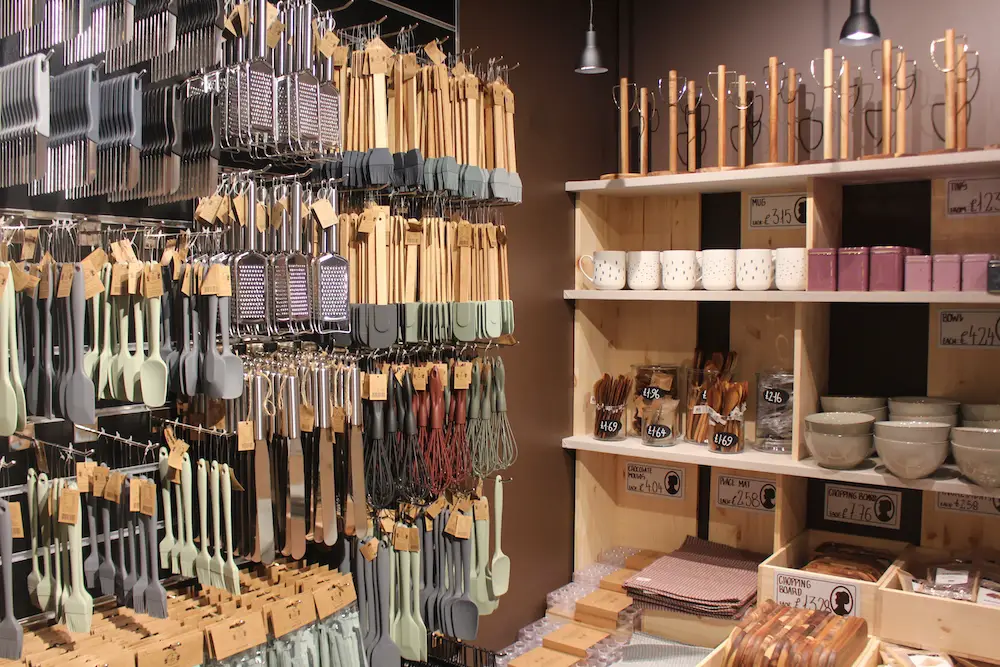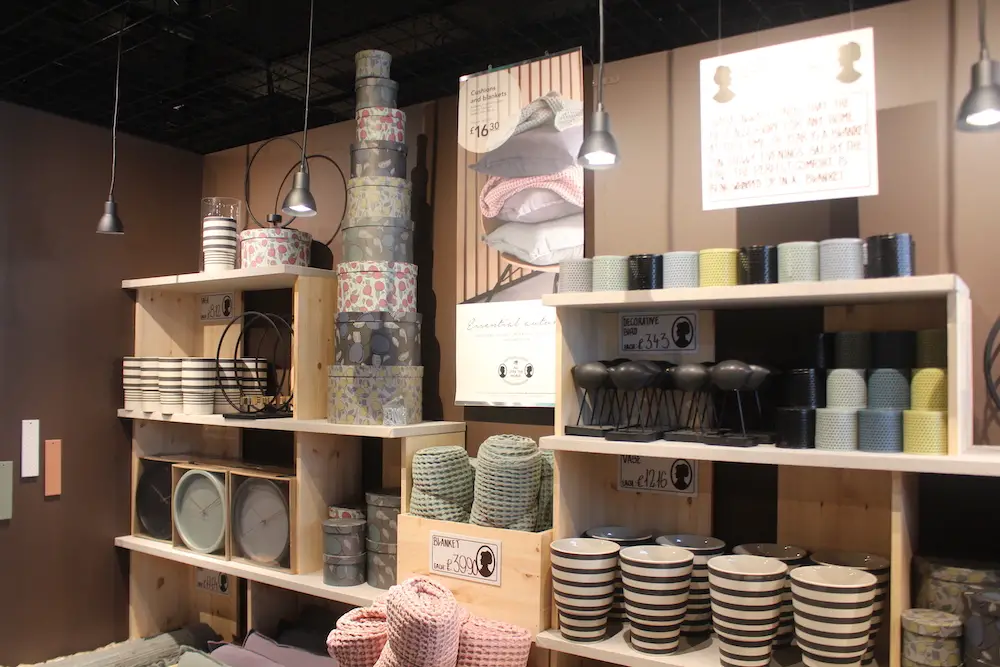 The shop layout leads customers on a trail through a variety of different sections, including furniture, interiors, children’s, stationery and office, arts and crafts, cards and wrapping, kitchen and much more.