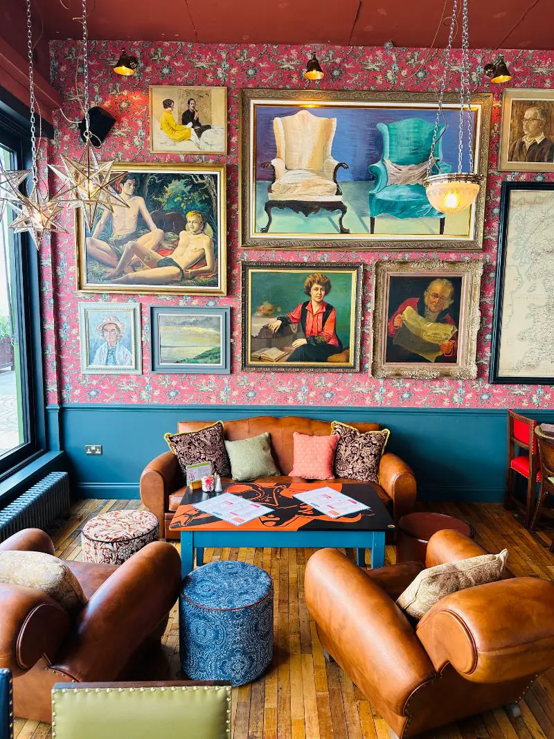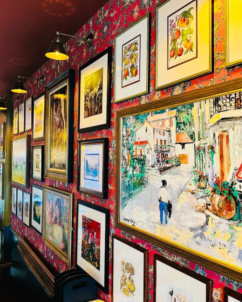 As our exclusive pictures show, Oppio is notable for its heavily patterned wallpapers and tiling, stripped wooden floors, oversized vintage sofas and eclectic artwork.