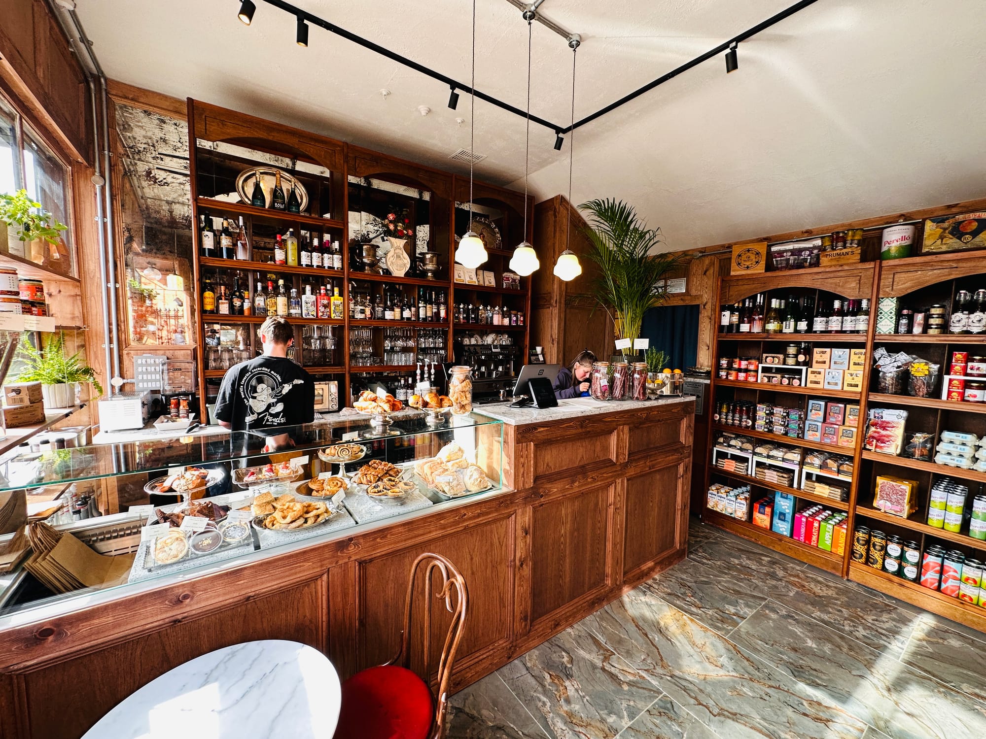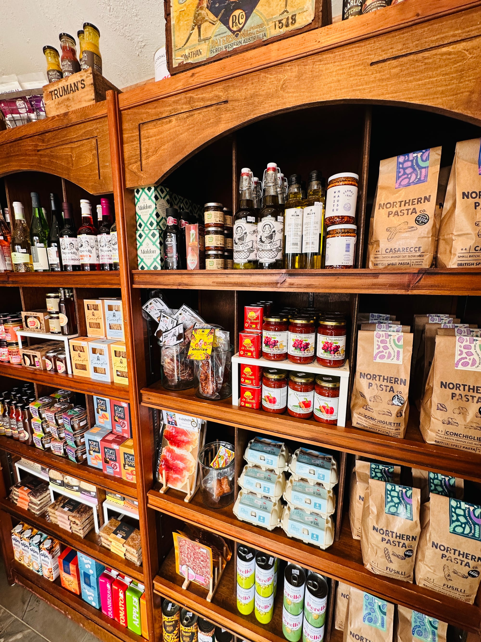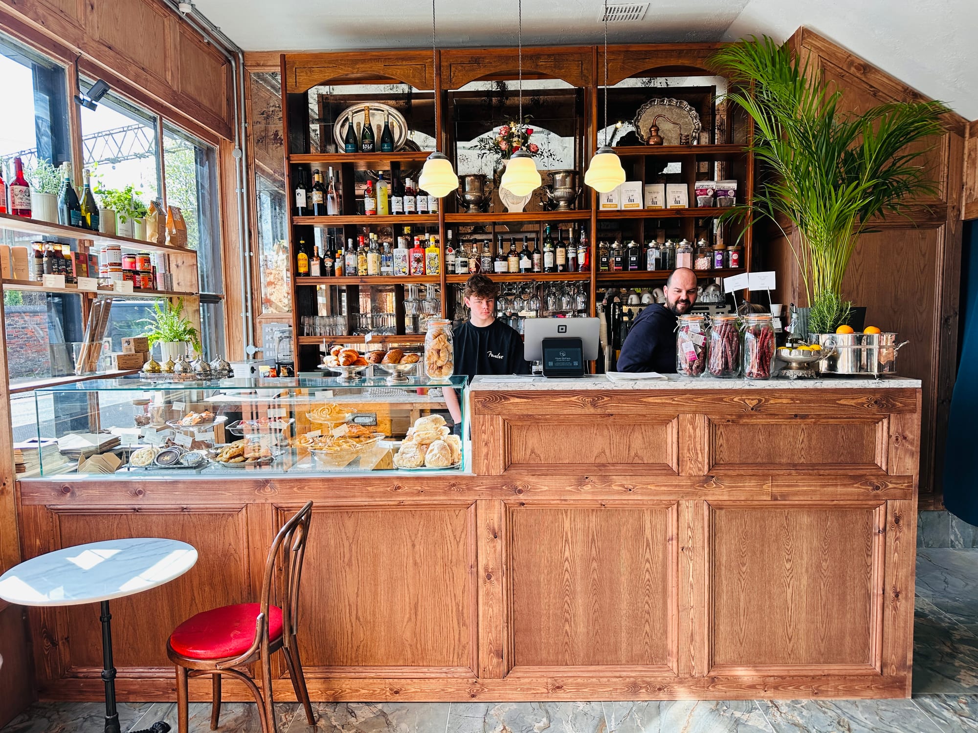 With seating space for around 25 customers, the cafe bar and deli sells a variety of hot and cold drinks, fresh bakes and treats, as well as daily provisions including pasta, eggs, biscuits, condiments, dried meats and milk. It also sells wine and beers, and offers cheese and charcuterie boards as accompanying snacks.