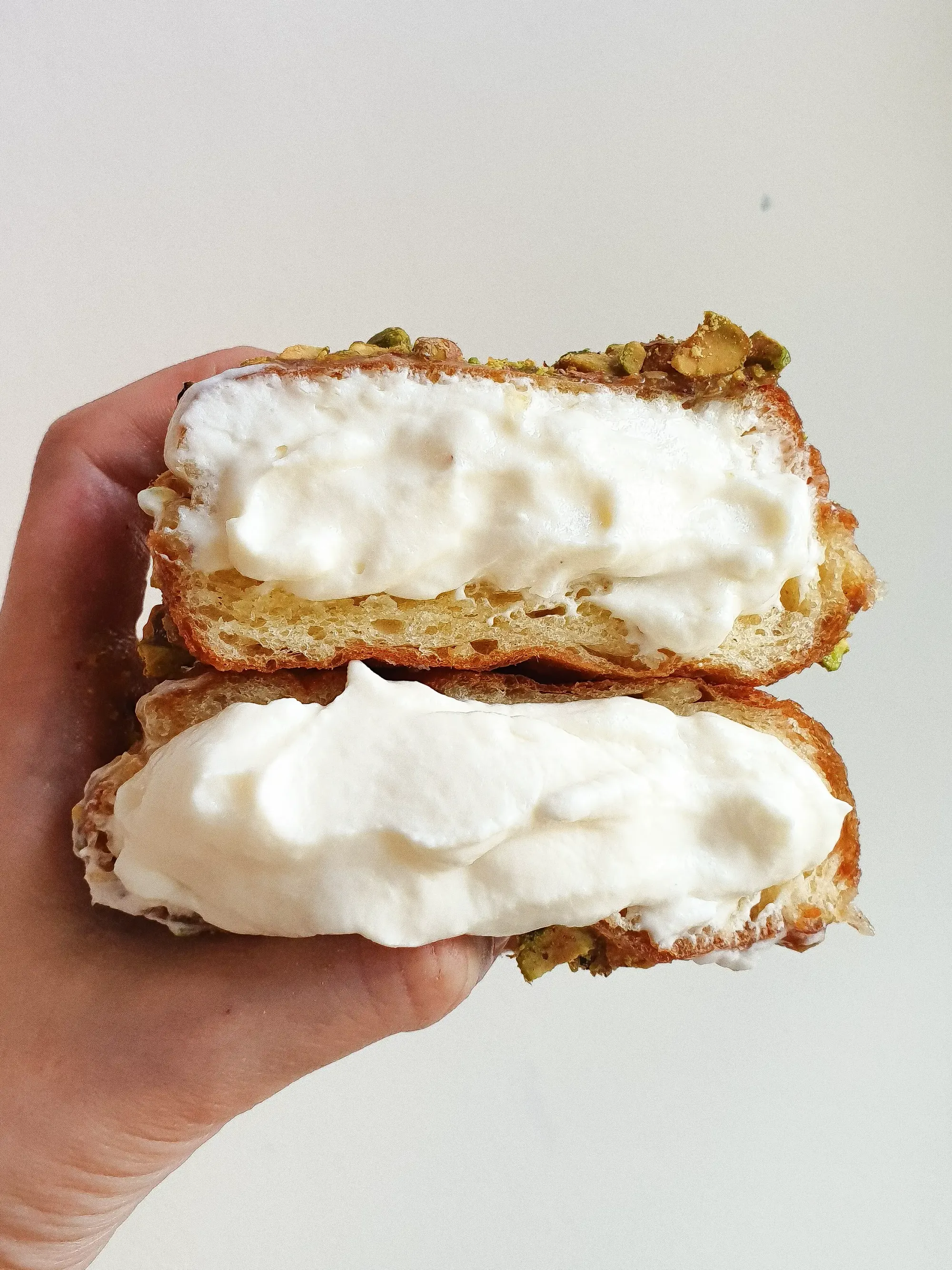 All D G H N T’s “very rich” doughnuts are made from brioche bread and come in a variety of indulgent, ever-changing flavours including pecan pie, apple pie, dark chocolate sumac, baklava and a raspberry pistachio pavlova.