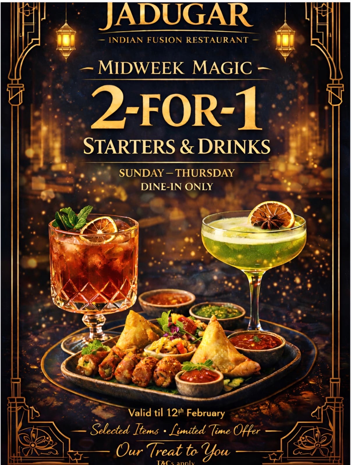 2 for 1 Starters and Drinks at Jadugar