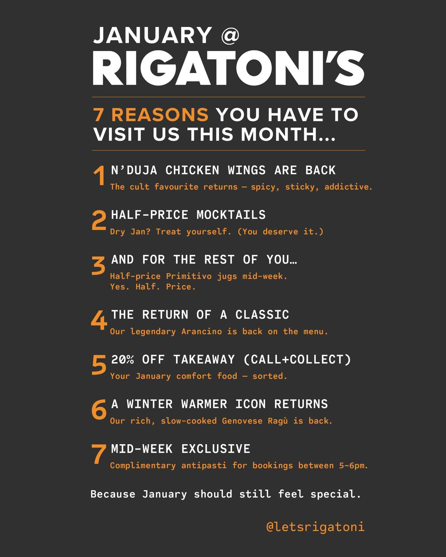 Various deals at Rigatoni's