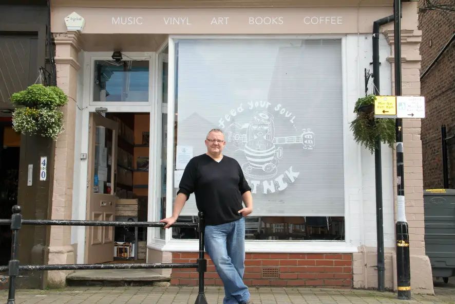 Manager Grant Hobson outside Beatnik Record Shop and Cafe on Greenwood Street