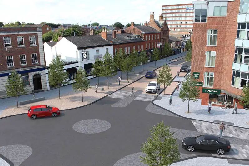 Our exclusive images show how Railway Street at the junction with Lloyd Street and The Downs will be drastically altered by the introduction of a roundabout instead of the current traffic light system, as well as wider, tree-lined streets, new street paving and more sitting areas.