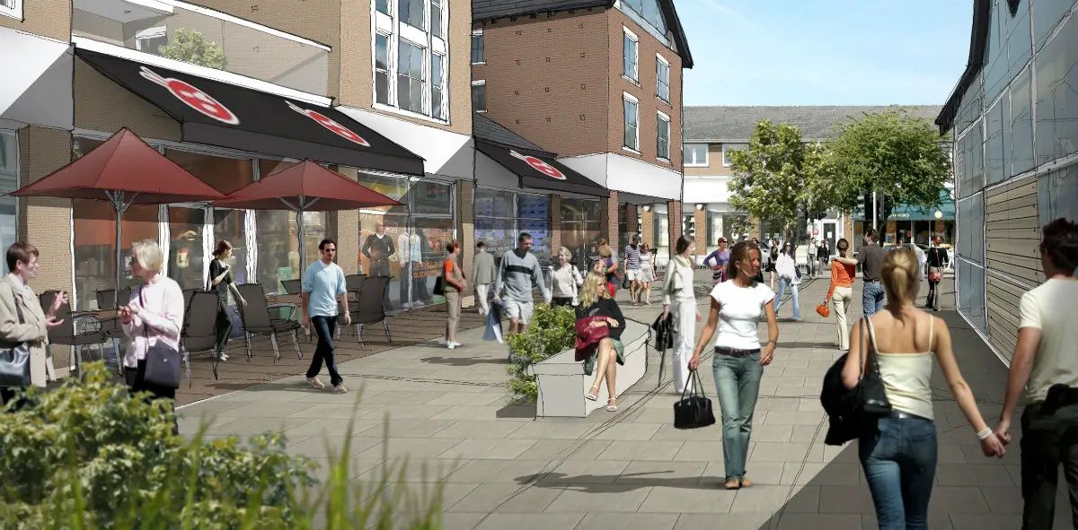Below: The new square between the retail outlets and the new Booths store (on the right)