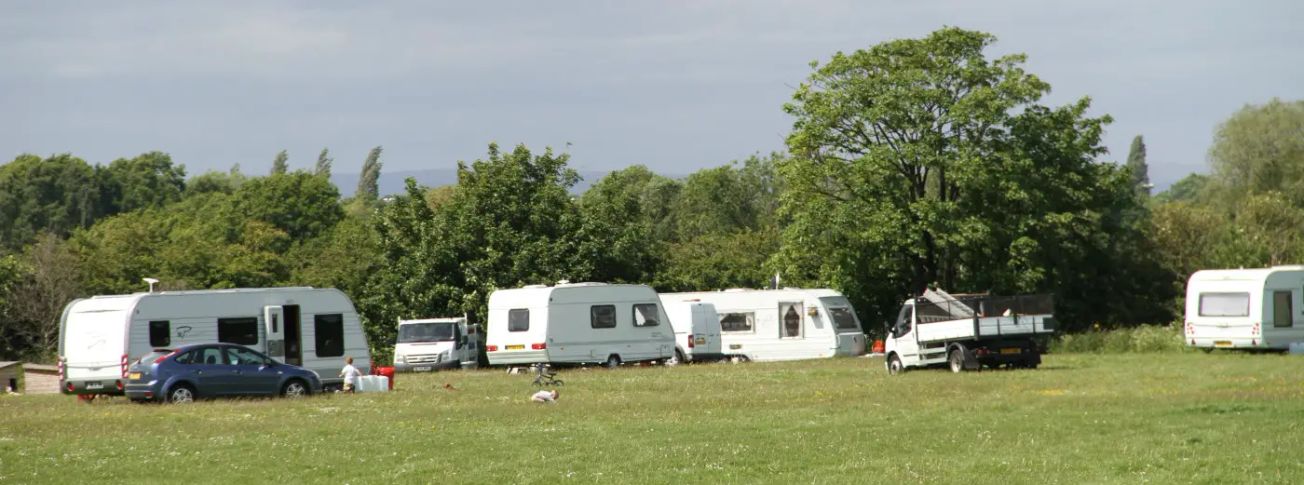 Below: The travellers’ camp on Grove Park Playing Fields
