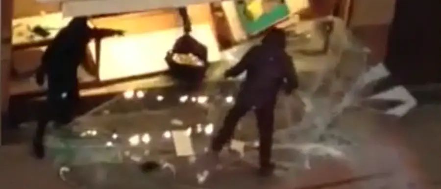 Video obtained by the Manchester Evening News shows a group of men in balaclavas holding up traffic on Railway Street as they brazenly stole thousands of pounds worth of jewellery in the incident, which happened shortly after 3.30pm.