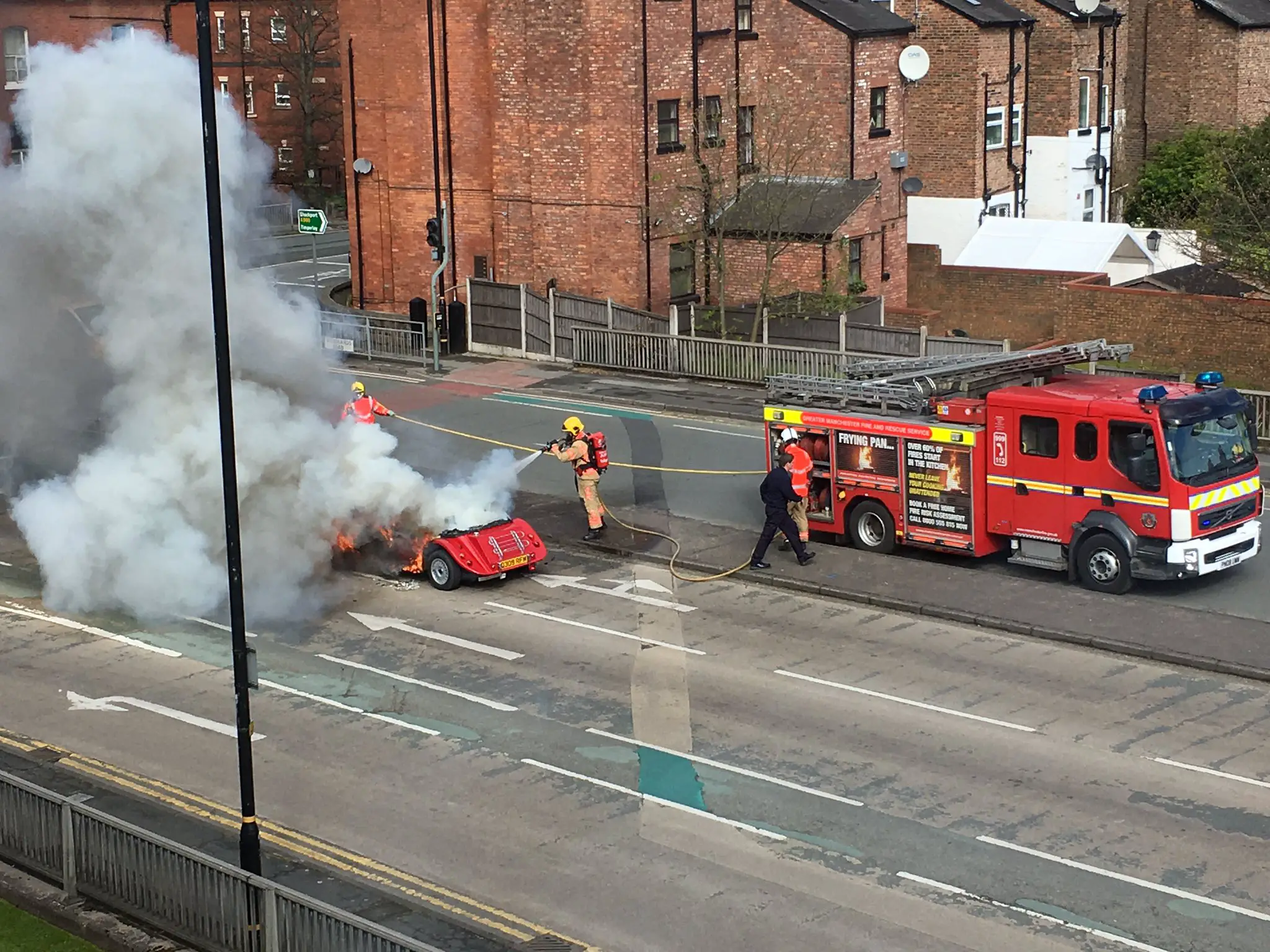 A vintage Morgan car burst into flames close to the junction of Barrington Road and Woodlands Road this morning.