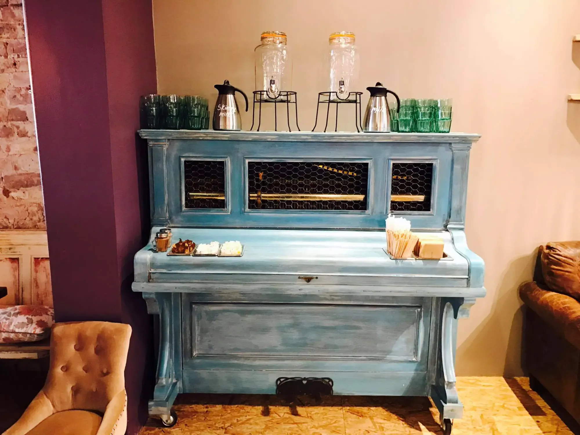 “We’ve been to many antique warehouses – Halifax, Leeds, London, we’ve been everywhere. I like getting creative. I made the piano myself and the coffee tables. It’s all my taste, I’ve built the shelves, the tables, the counter.”