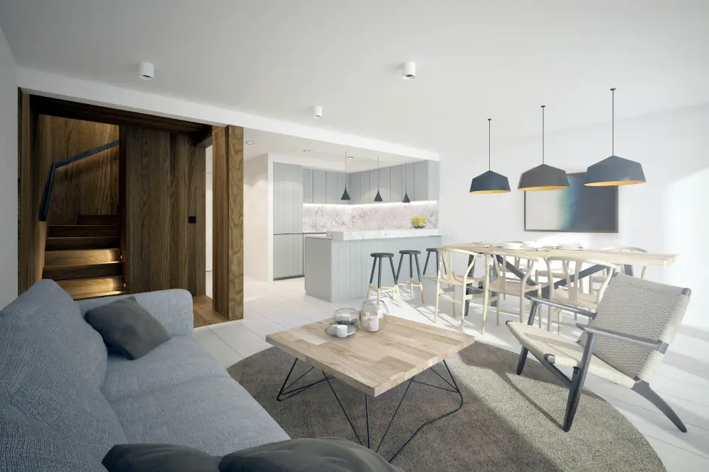 The striking scheme is a mixture of single-level, duplex and triplex apartments, as well as six one-bedroom mews houses. Each property mixes high-end contemporary style with comfort and each benefits from its own private outdoor space, ranging from balconies to courtyards.