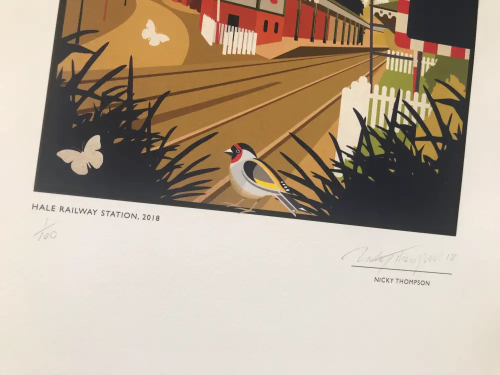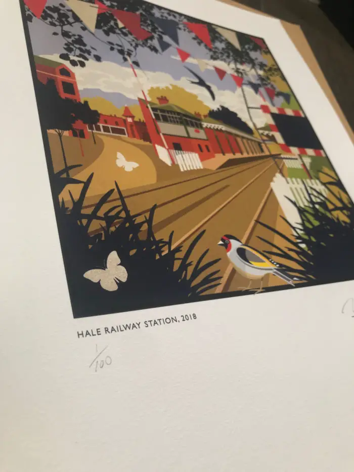 We’re very pleased to be able to say that this completely original artwork of Hale Railway Station is now available as a Limited Edition run of 100 Giclee Matt 300gsm unframed prints, A3 size (302mm x 420mm).