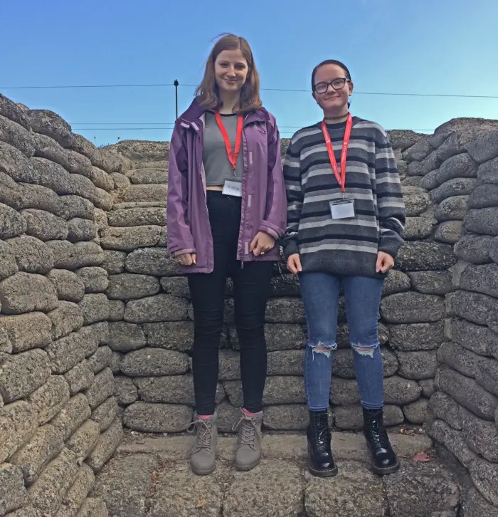 Lizzy Hammond, 18, and Libby Tiernan, 17, seized the opportunity to join an inter schools’ trip organised by the Department of Education and educational promoters ‘Poetry by Heart’ to see the trenches at Ypres and the Somme, where hundreds of thousands of young men were sacrificed.