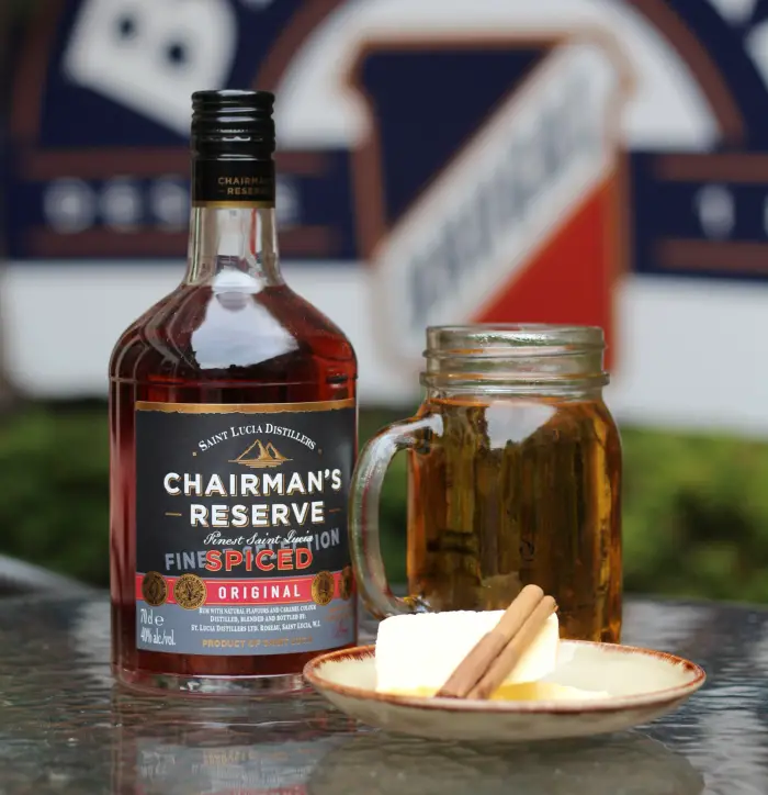 Enjoy our alternative to mulled wine to warm you up this winter as we heat up the St Lucian rum of Chairman’s Reserve Spiced with apple juice, fresh cloves cinnamon and nutmeg, complete with a knob of salted butter to stir.