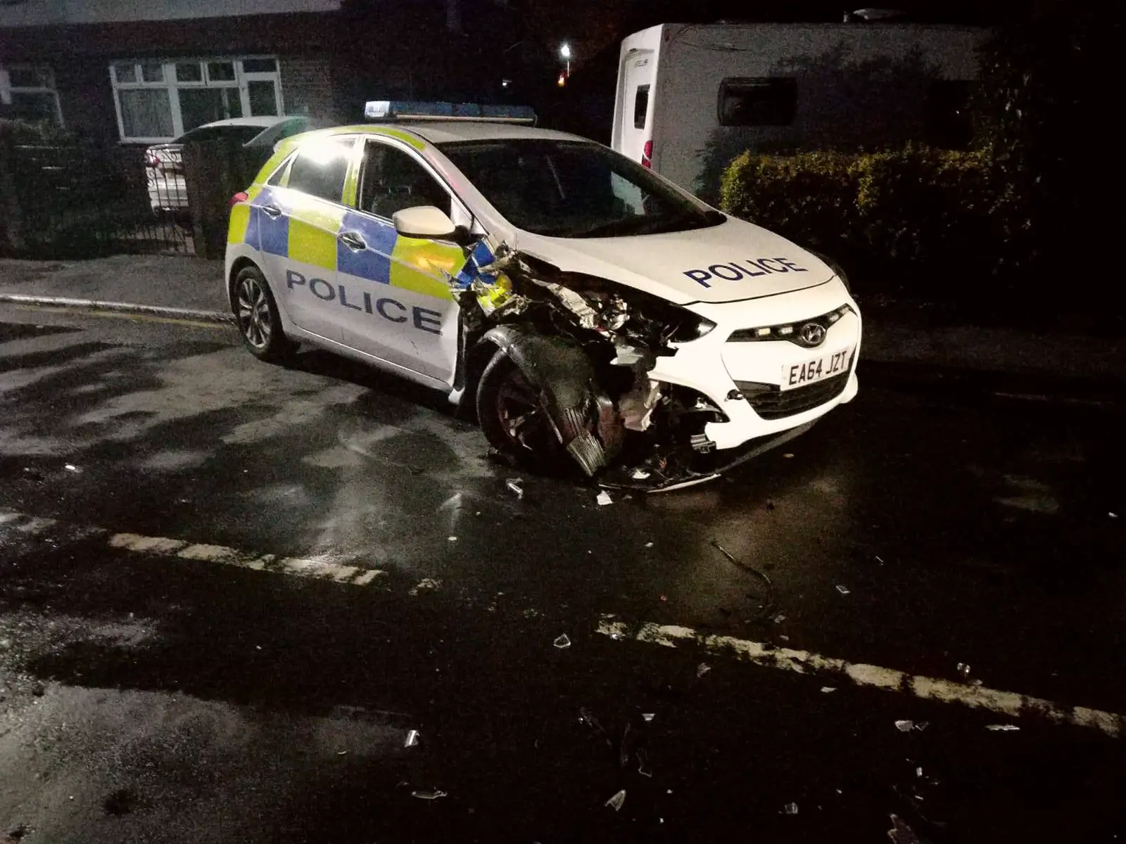 Police have released an image showing a Hyundai police car with severe damage to its front driver side.