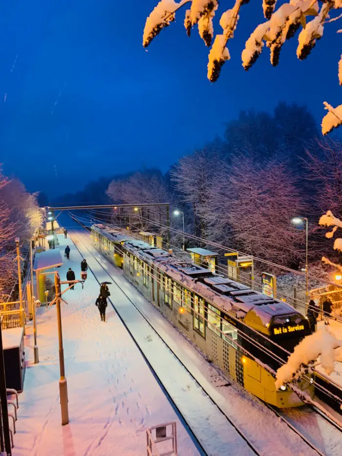 Heavy overnight snow is causing huge disruption in Altrincham this morning with tram and train services cancelled, schools closed and treacherous driving conditions on all roads.