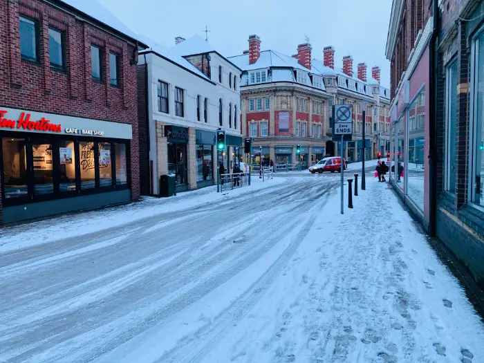 Altrincham town centre in the snow this morning: