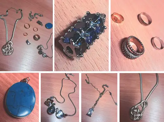 Among items recovered were several pieces of jewellery which detectives suspect may be stolen – and now officers have released photos in a bid to get the owners to come forward.