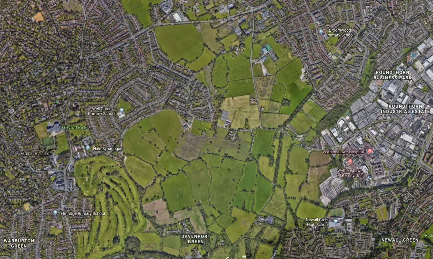 Greater Manchester’s new housing and employment masterplan, the Greater Manchester Spatial Framework (GMSF), is proposing to build the homes – only 30% of which will be “affordable” – on a large plot of land known as the Timperley Wedge, which sits to the south east of Timperley on countryside between the Well Green and Davenport Green on one side and Newall Green and the Roundthorn Industrial Estate on the other.