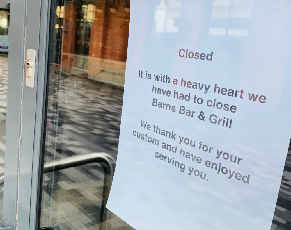 A notice on the door simply confirms: “It is with a heavy heart we had had to close Barns Bar & Grill.