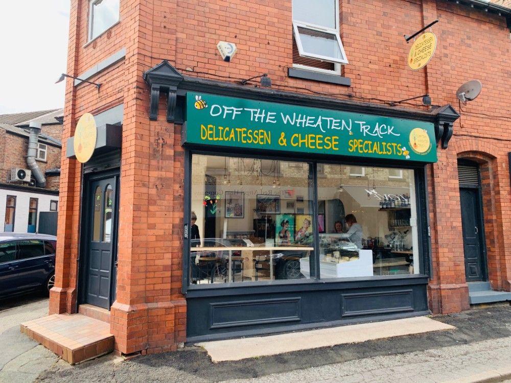 Hadfield has sourced most of her products locally. Alongside cheeses, cooked meats, pies, cakes, pancakes, omelettes, homebread flat breads and gluten-free bread, Off The Wheaten Track also has an alcohol license and will sell wines, Dunham Massey ciders and gluten-free lagers from First Chop brewery in Eccles.
