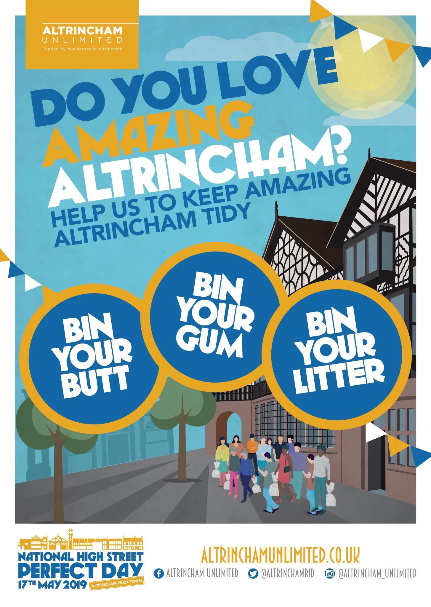 Sarah Walmsley is coordinating a litter pick-up in the town centre tomorrow evening between 7pm and 9pm as part of the drive to get Altrincham looking its best for the National High Street Perfect Day on Friday.