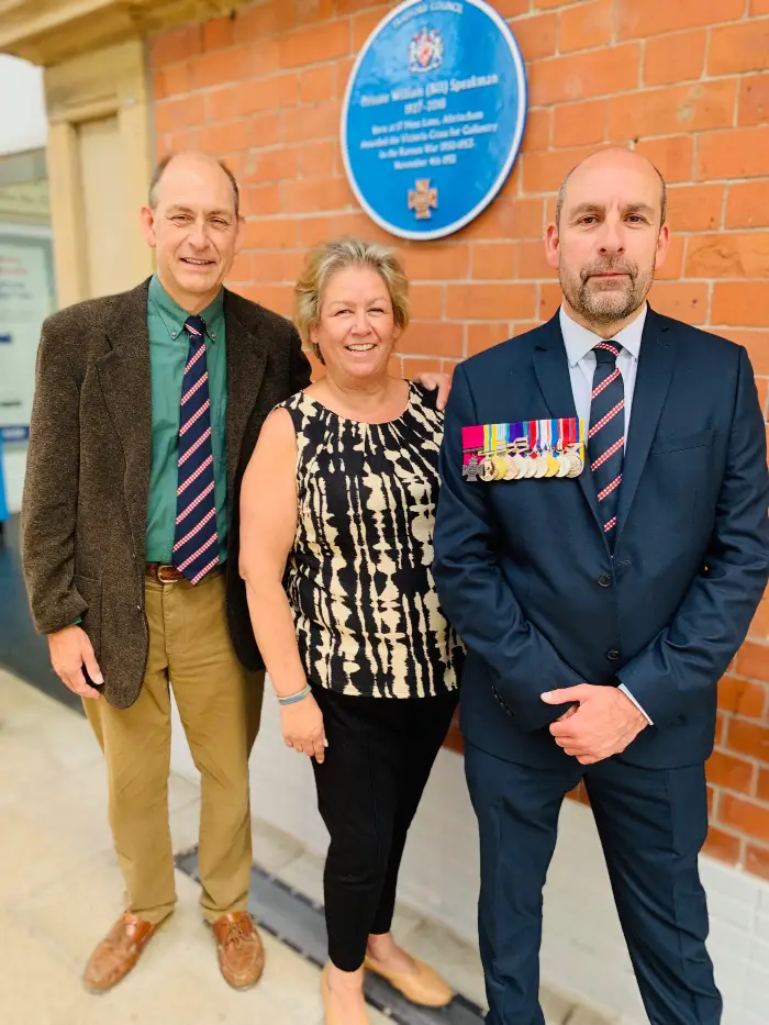 The youngest son of Bill Speakman VC said the unveiling of a Blue Plaque honouring his war hero father was a “very special day”.