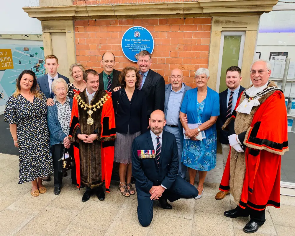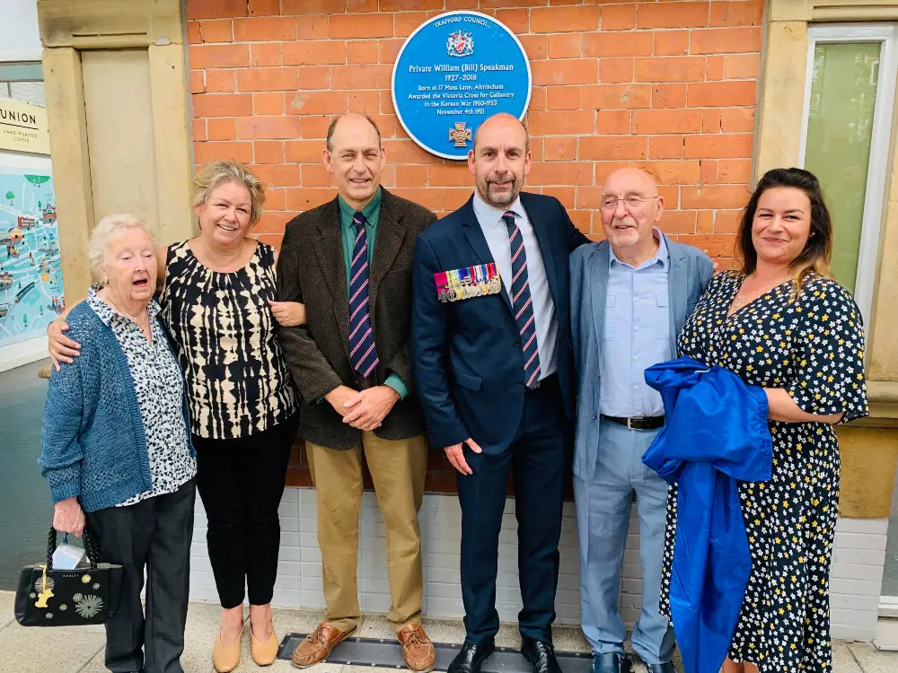 A year to the day since the death of Private Speakman – who had been the only living Victoria Cross holder from the Korean War – the plaque was unveiled at Altrincham Interchange, just yards from his former home on Moss Lane.