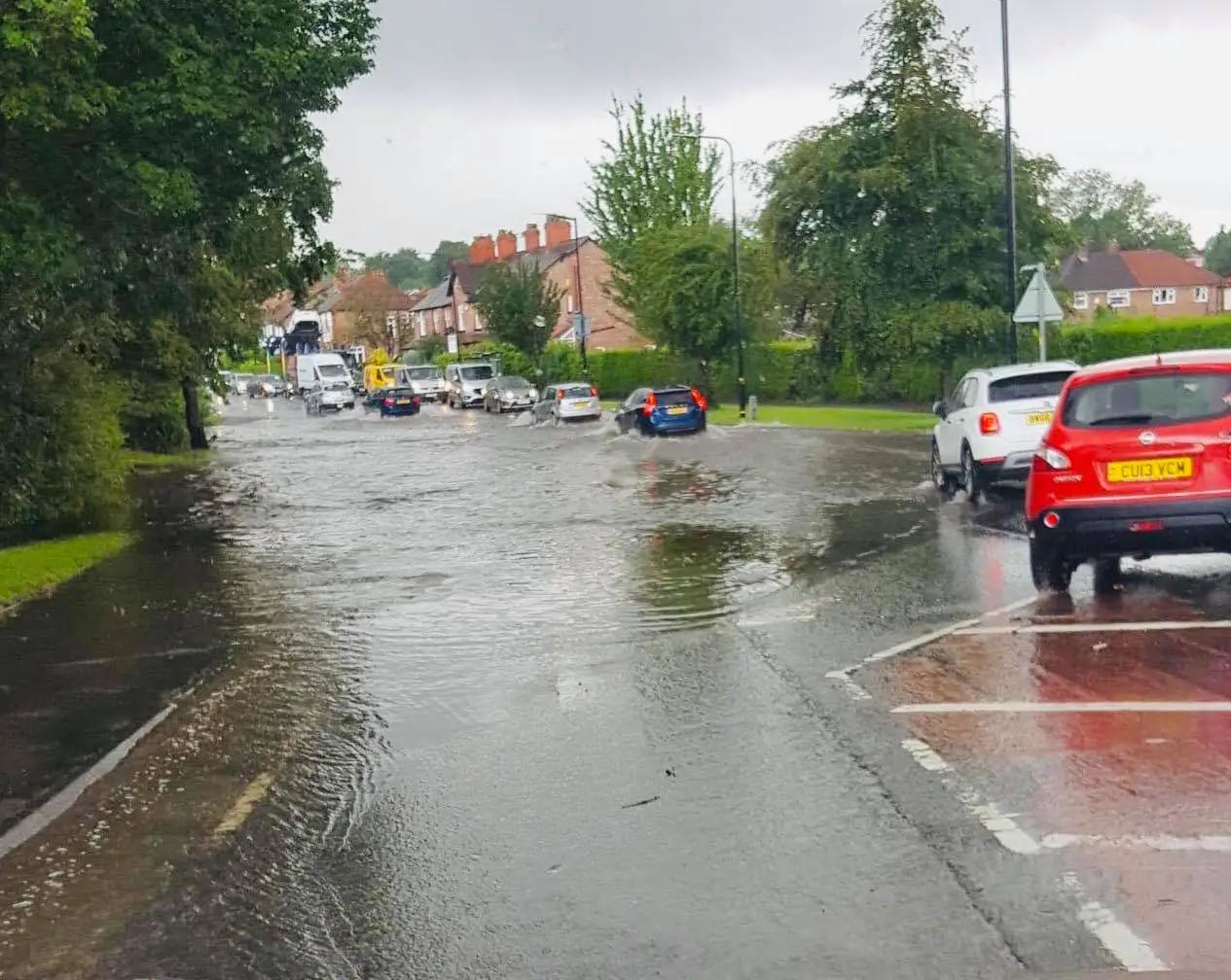 Cars were stranded on roads including Wellfield Road and Thorley Lane in Hale and there were scenes of severe flooding on Delahays Road.