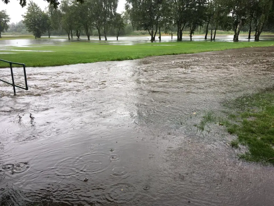The flood drain on the Navigation Recreation Ground also became so full that water geysers started spurting from the ground.